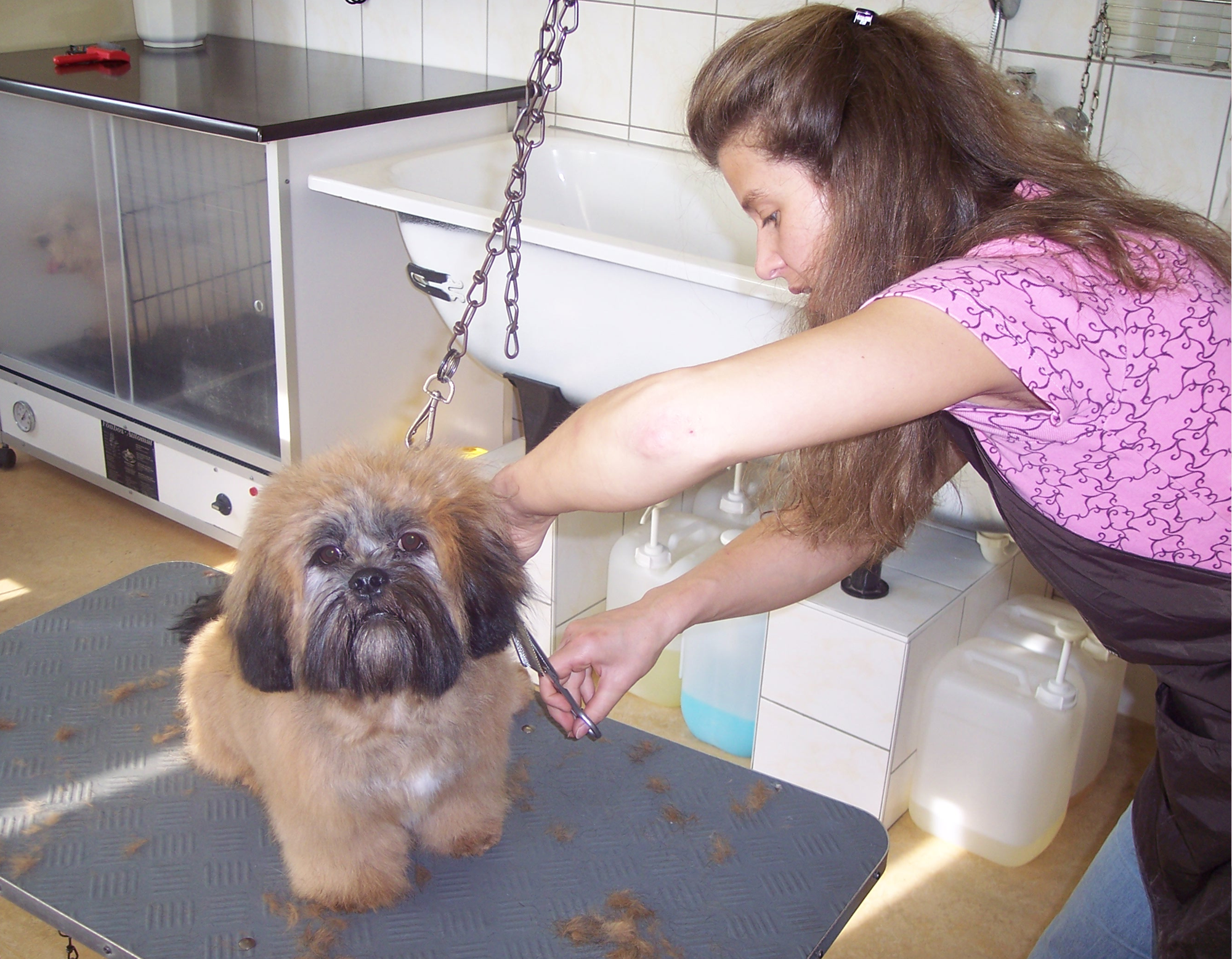 Selbstverständlich verwenden wir professionelle Schermaschinen und Scheren, mit denen wir gern Ihren Liebling entsprechend Ihren Wünschen, entweder ganz individuell oder rassetypisch frisieren. Sollten jedoch die Verfilzungen des Haarkleides Ihres Hundes zu stark sein, bleibt uns nur das Kurzscheren des Fells unterhalb des Filzes, da alles andere unzumutbar für Ihren Liebling wäre. Deshalb vereinbaren Sie rechtzeitig einen Pflegetermin mit uns.